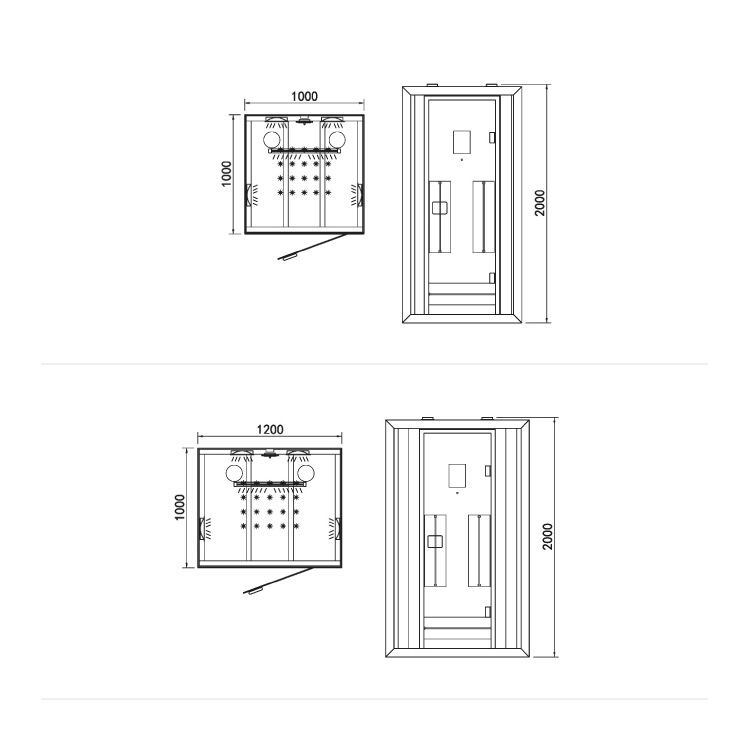 1000x1000x2000mm \ 1200x1000x2000mm